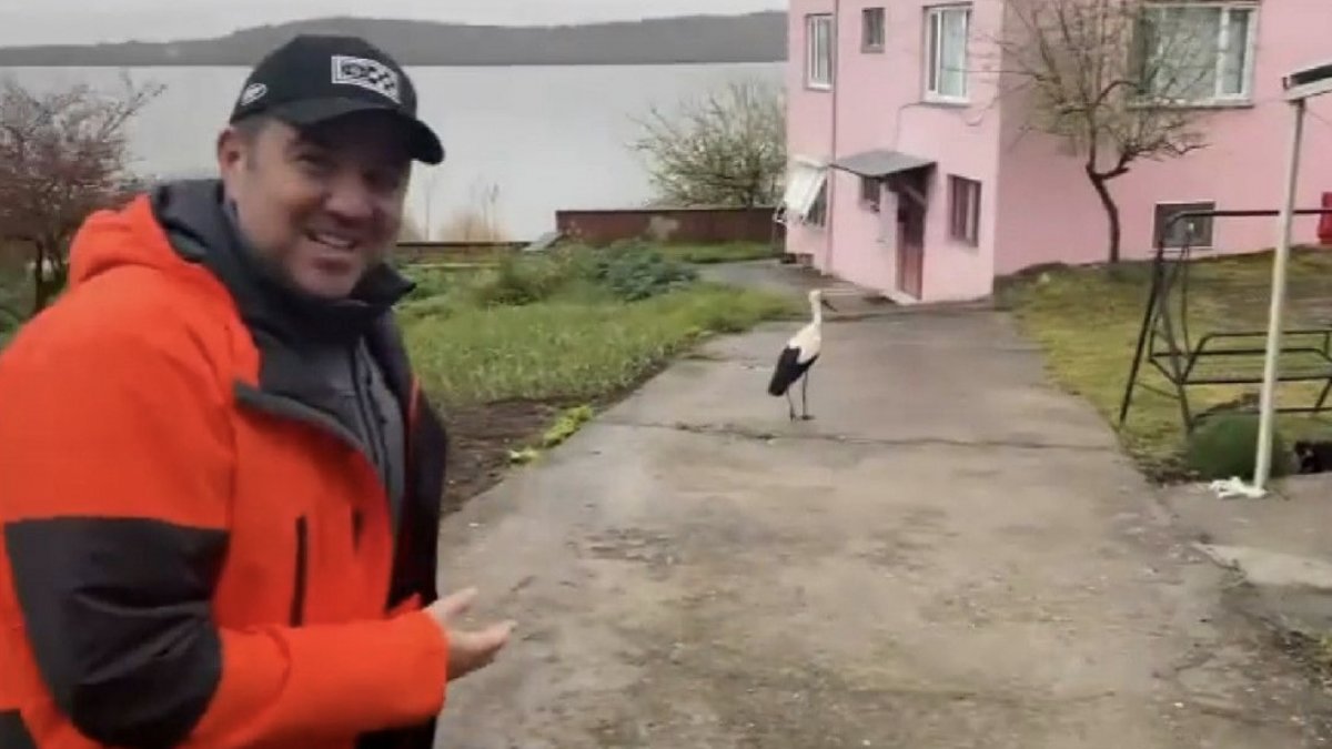 Bursa'ya film hazırlıkları için gelen komedyen Ata Demirer, gittiği Eskikaraağaç Leylek köyünde Yaren leyleği elleriyle besledi.