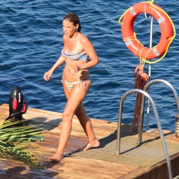 Bodrum'da görüntülenen Birce Akalay, görüntü vermemek için havlusuna sarışdı.